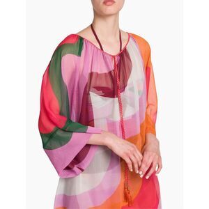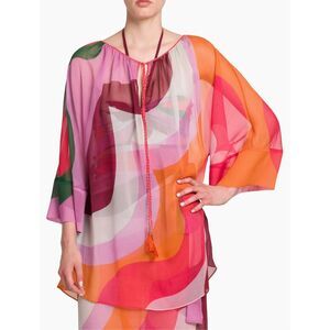 NWT Etro Tassel Tie Quarter Sleeve Semi Sheer Wavy Print Tunic Top Multicolor IT