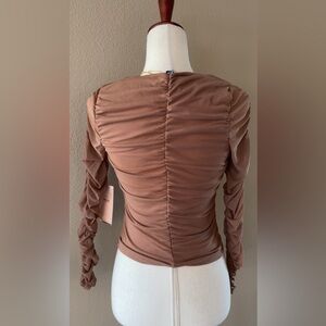 Shirred mesh blouse in brown