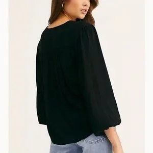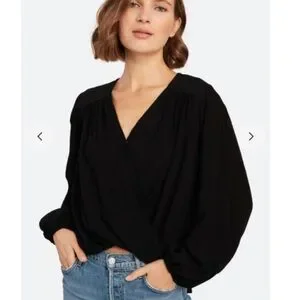 Free People wrap blouse Tee long sleeve v-neck Black flowy top