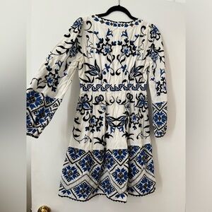 Anthropologie | Sweetheart Embroidered White and Blue Mini Dress