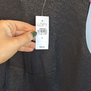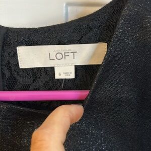 NWT LOFT Dress A Line Peekaboo Lace Back Party Black Silver Metallic