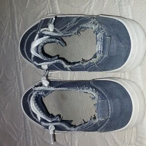 Size 8. Denim. Blue, white with silver glitter A for Alabama. Slide on. Great condition. Like new. Sneakers.