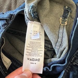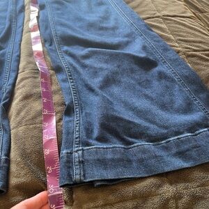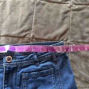 Pre owned Anthropologie Pilcro Ultra High-Rise Flare Jeans in good condition! No flaws! Medium wear. Slim flare fit. Front and back patch pocket. Front Zip closure. Fabric is stretchable. Color is denim blue.