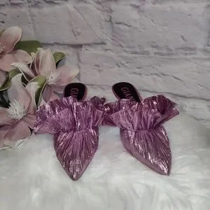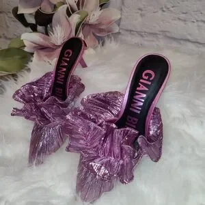 Gianni Bini Metallic Rossallio Pink Ruffles Kitty Heels
