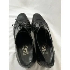 FERRAGAMO Salvatore Men's Leather Cap Toe Brogue Oxford Black 11.5