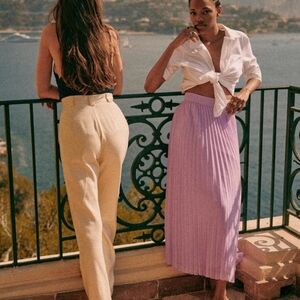 Sezane Dilo Long Pleaded Flowy Skirt