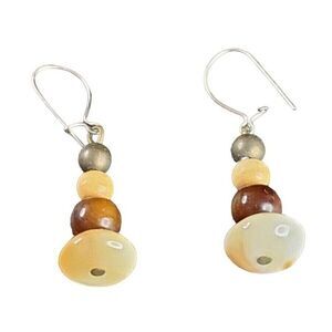 Beaded, dangle, drop, enamel, stone earrings, for pierced style wear. Unmarked.