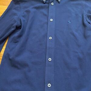 Explore Ralph Lauren for smart wardrobe staples. This navy blue shirt represents minimalist fashion. Cut to a slim fit, it is crafted with lightweight cotton that grants you comfort and lasting shape. Sophisticated and stylish, the shirt stands out as a formal piece.