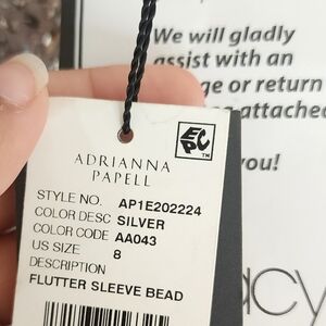 ☆Adrianna Papell Silver Beaded Sequined Butterfly Flutter Trim Midi Dress☆