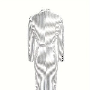 Three-Piece - Striped Print Crop Tube Top, Double Breasted Lapel Blazer & Skirt