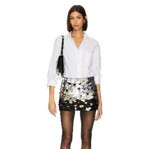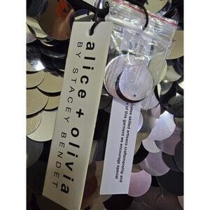 Brand New with Tags Alice +Olivia Rubi Metallic Paillette-Embellished Miniskirt Black/Silver 10 NWT, MSRP.$495