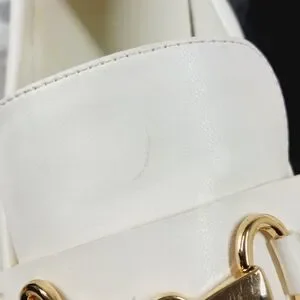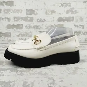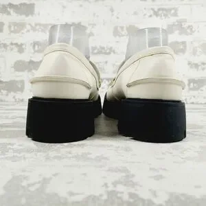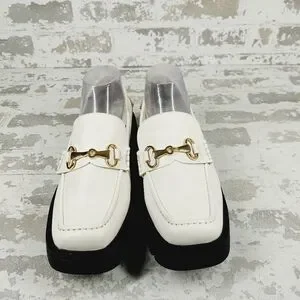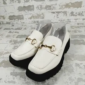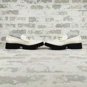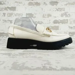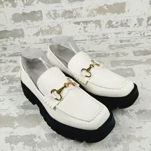 NEW Nordstrom Open Edit White Faux Patent Gold Chunky Academia Loafers C433