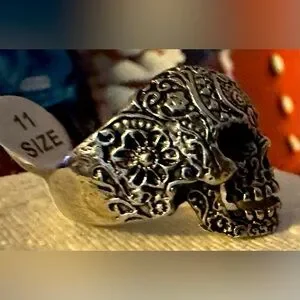 NWOT skull ring in size 11. Intricate designs on the sides.