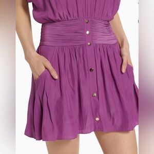 Crafted of pleated jersey for a drapey look, Ramy Brook's Corinne minidress features short dolman sleeves and buttoned accents at the skirt.