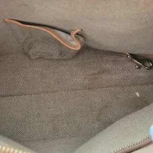 Dooney & Bourke logo bag used missing strap has signs of wear staining on inside lining. Top zipper closure inside zipper pocket for storage. Pictures taken of aprox measurements.
