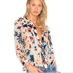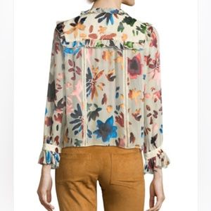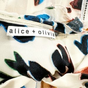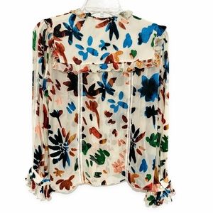 Alice + Olivia | Malinda Devore Ruffled Blouse Prisma Floral Burnout Size Small
