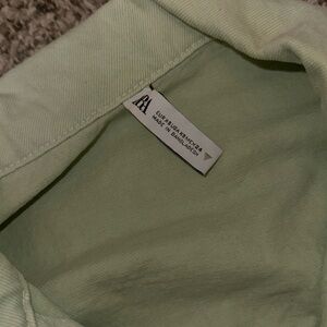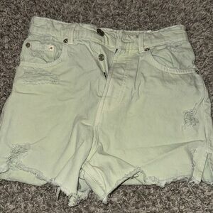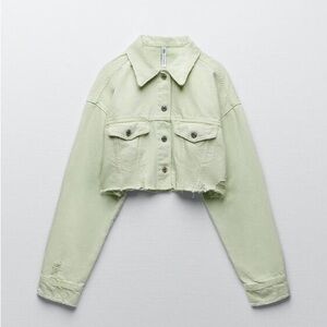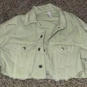 Never worn!!! Set is in Apple Green and looks a little more green than in pics. Cropped denim jacket in size XS, and high rise shorts in size 4. Both are distressed look. A great transition piece!