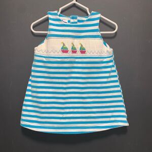 Girls 18m Smocked Sail Boat Dress Blue White Stripes