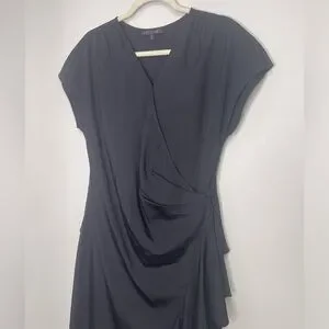 Stunning silk wrap dress by Lafayette 148 with flattering ruffle details in the front and back. Excellent condition. See photos for fabric tag and care details.