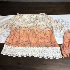 Taylor and sage sheer floral and crochet top