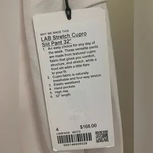 Lululemon Textured Split Cupro Pant 32” in white opal and size 4. New with tags!
