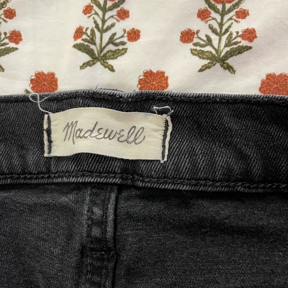 Madewell size 30 high rise black denim frayed hemmed shorts.