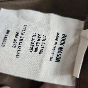 Buck Mason Pants Men's 31x29 Olive Green Roper Twill Ford Standard Jean