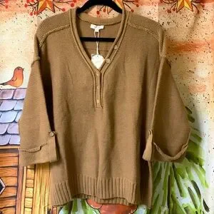 NWT brown sweater/3/4 sleeves with split sides