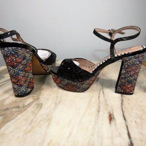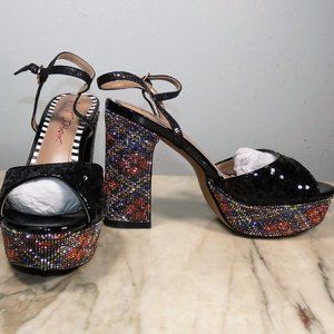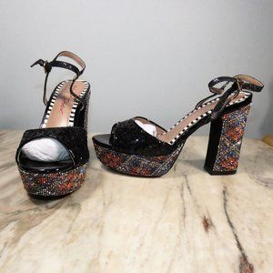 SPARKLING Betsey Johnson ALAIA sequin and rhinestone heeled platform sandals 8m