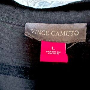 Vince Camuto black 3/4 sleeve with button neckline at top only, pullover blouse. In excellent condition