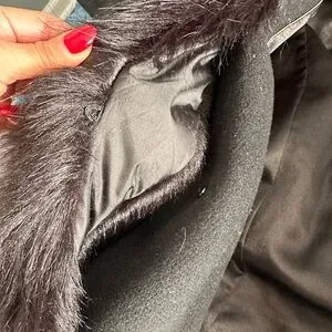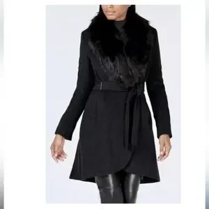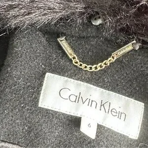 Calvin Klein Black Wool Wrap Coat Detachable Fur Collar Size 6