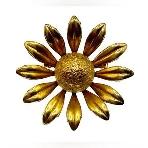 Vintage Gold Tone Floral Flower Daisy Brooch Pin