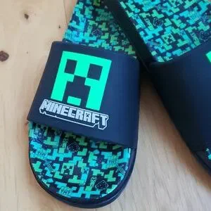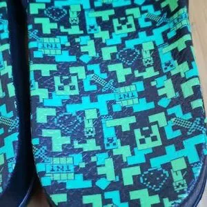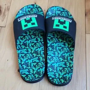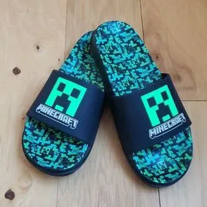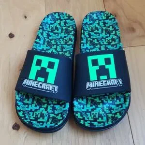Boys Mincraft slides, size 3/4. Worn twice, my son has outgrown. Like new. Contoured cushioned foot beds with rubberized upper. Minecraft logo, with creepers and TNT throughout.