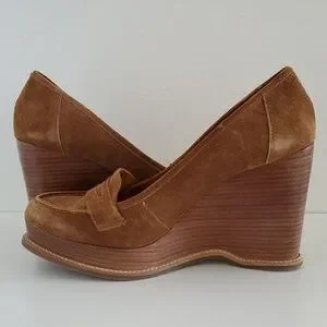 Michael Kors Dazed wedge shoe in luggage sport suede. Loafer style wedges. Leather lined. Women's size 10m. Made in Brazil. Excellent like new condition with box. Never worn.