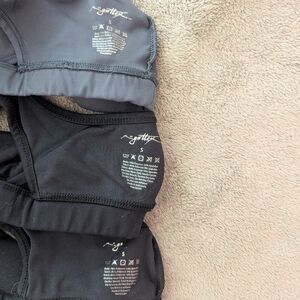 Three identical women's sports bras, two in black and one in grey. Brand is X by Gottex, originally purchased from TJ Maxx. Purchase comes with all three bras, unless requested otherwise. All are size small. Spandex is still very stretchy and responsive, not stretched out.