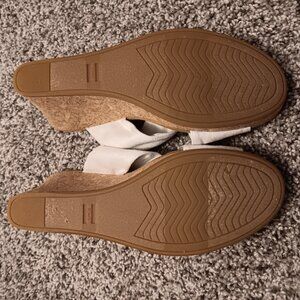 Worn Once Toms Serena Cork Wedge Sandal Heels Size 12 Natural Microfiber Color