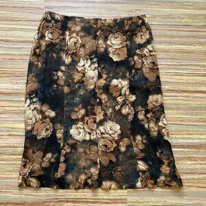 Autumn Rose Knee Length Skirt Vintage 90s Louben Neutral Brown Made in Canada