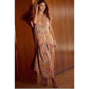 ⭐️Misa Los Angeles Laura Drop Waist Shirtdress Poly Chiffon Multicolor