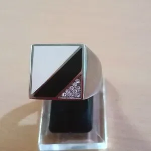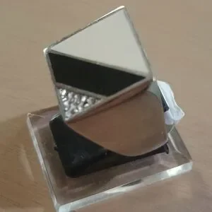 Men's Stainless Steel Black Enamel Cubic Zirconia Signet Ring Fine Jewelry