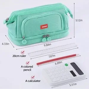 Large Capacity Pencil Bag for Girls - Ideal for School Supplies and Organization (Mint green)