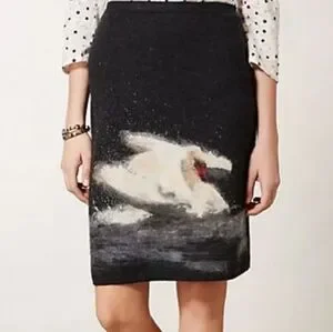 Anthropologie Troubadour Odette abstract swan knit wool skirt