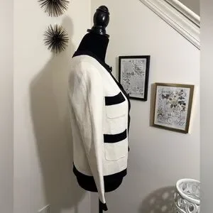 kate spade color block cardigan in white with black accents size small