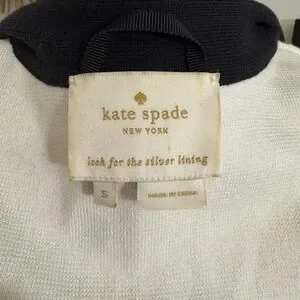 kate spade color block cotton cardigan sweater in off white with black accents. Button closure. Perfect for fall and winter. Several very small snags. Please see photos. Perfect for business casual or dressing up an everyday casual outfit.