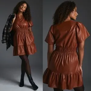 Anthropologie The Somerset Mini Dress Faux Leather Edition