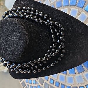 Long Black Glass Beaded Necklace. Excellent Condition. Necklace measures 62" Long. No clasp.
