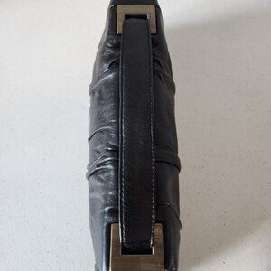 "EUC" Fantastic Soft Black Lambskin Leather Clutch By Kooba. Pleated Leather, Zip Top Closure with Bottom Hand Carry Strap, Clean Textile Lining, Brushed Brass Hardware & Logo Plate, Bag Measures approx. 5 T X 11.5 W X 1.5 D, Great Condition, No Wearing/Corners/Stains, Used a Couple Times & Stored:) Rt.245.00 approx. * Perfect Event/Date Night/Holiday Party Bag.
