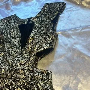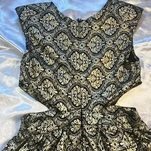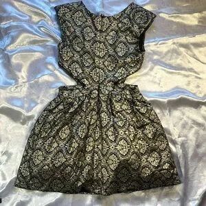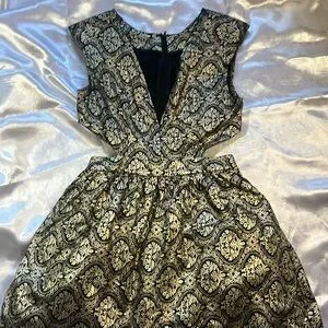 Gold Metallic Mini Cocktail Dress with side cutouts.