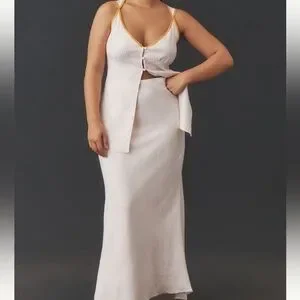 NWT Anthropologie Linen Cutout Button-Front Tank. Linen, viscose, elastane, button-front, hand wash, 26”L