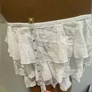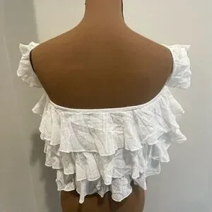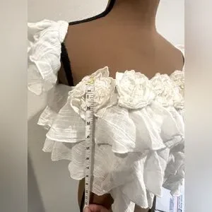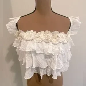NWT linen cropped too whites. Decorative flowers across the top. Statement piece. Size medium