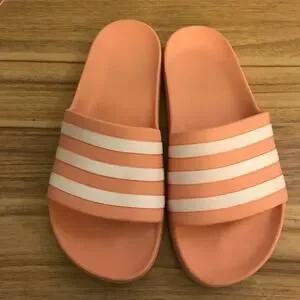 Adidas Adilette White Pink Slip On Sandals Slides Women's 8
